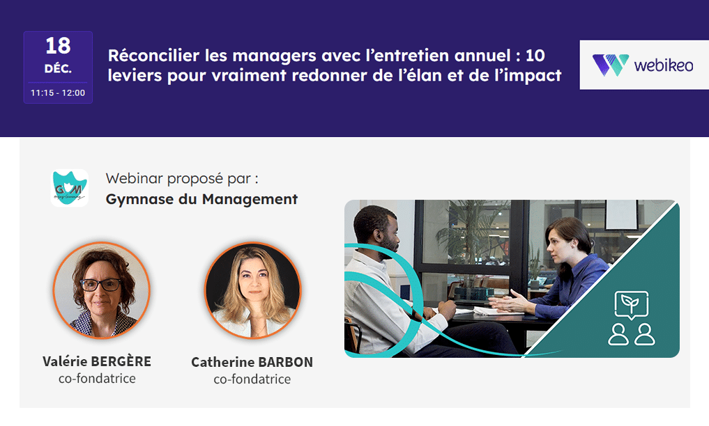 Inscrivez-vous au prochain webinaire du Gymnase du Management le Jeudi 18 décembre à 11h15 sur l'entretien annuel.