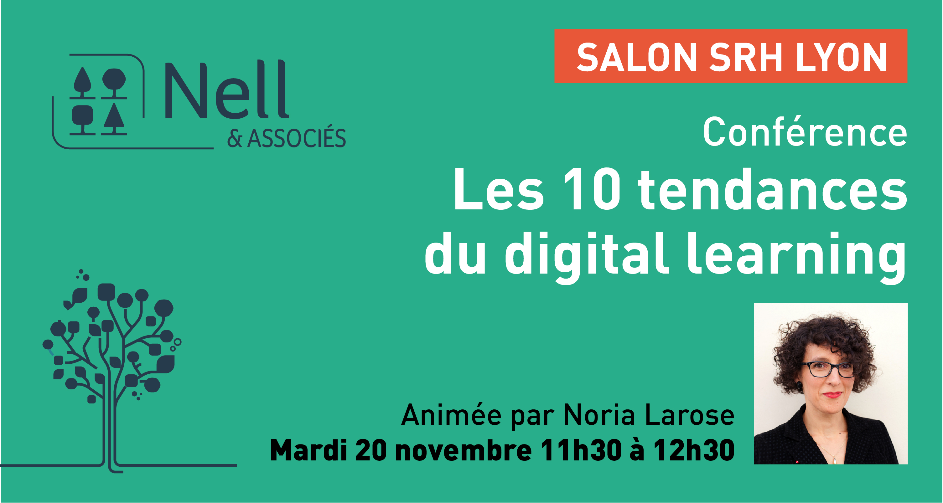 L'équipe de Nell & Associés accueille sur le stand A11 du Salon SRH à Lyon tous les professionnels soucieux de pédagogie. Mardi 20 novembre à 11 h 30, salle Récamier, Noria Larose anime une conférence sur les 10 tendances du digital learning. Les sujets à aborder sont nombreux, les questions sont bienvenues et les partages d'expériences appréciés.